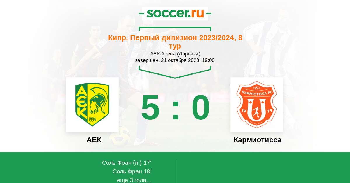 Протокол матча АЕК против Кармиотисса