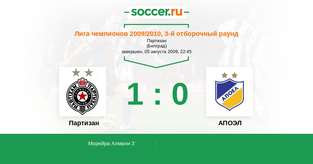 Протокол матча Партизан против АПОЭЛ