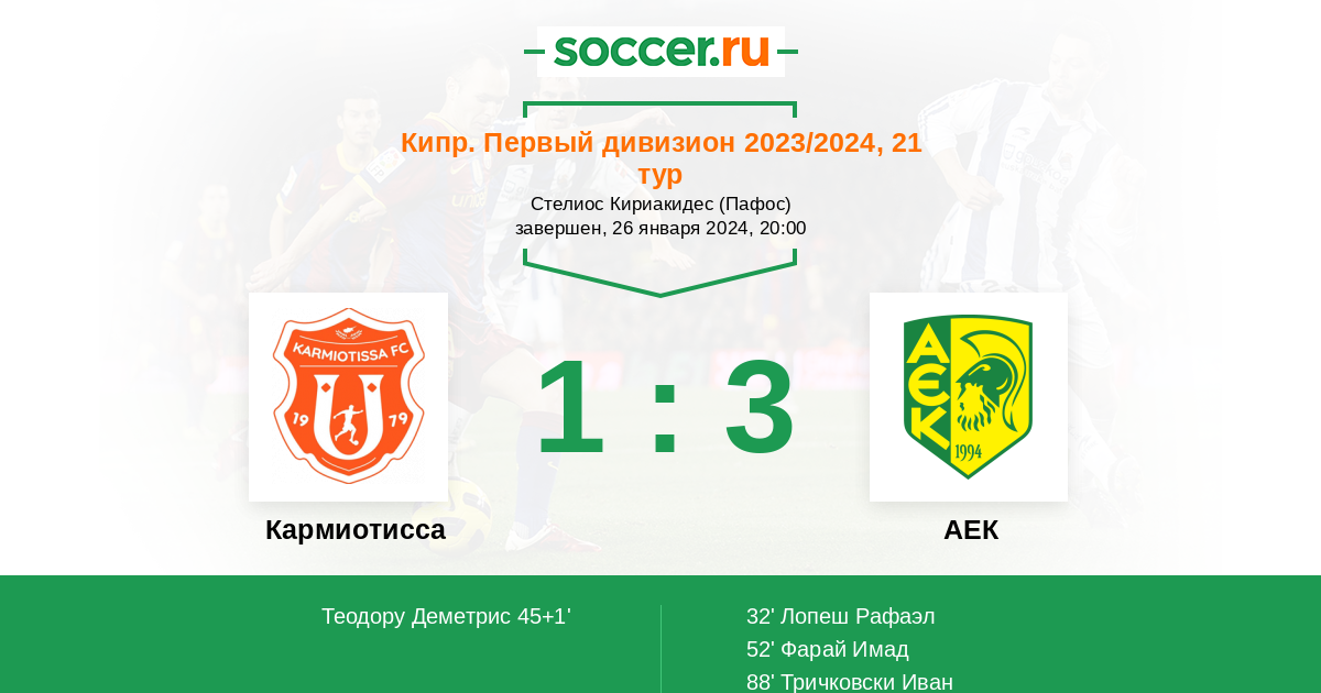 88' Кристофору Кипрос (27) уходит с поля, Хараламбус Стефанос (23) вышел на поле