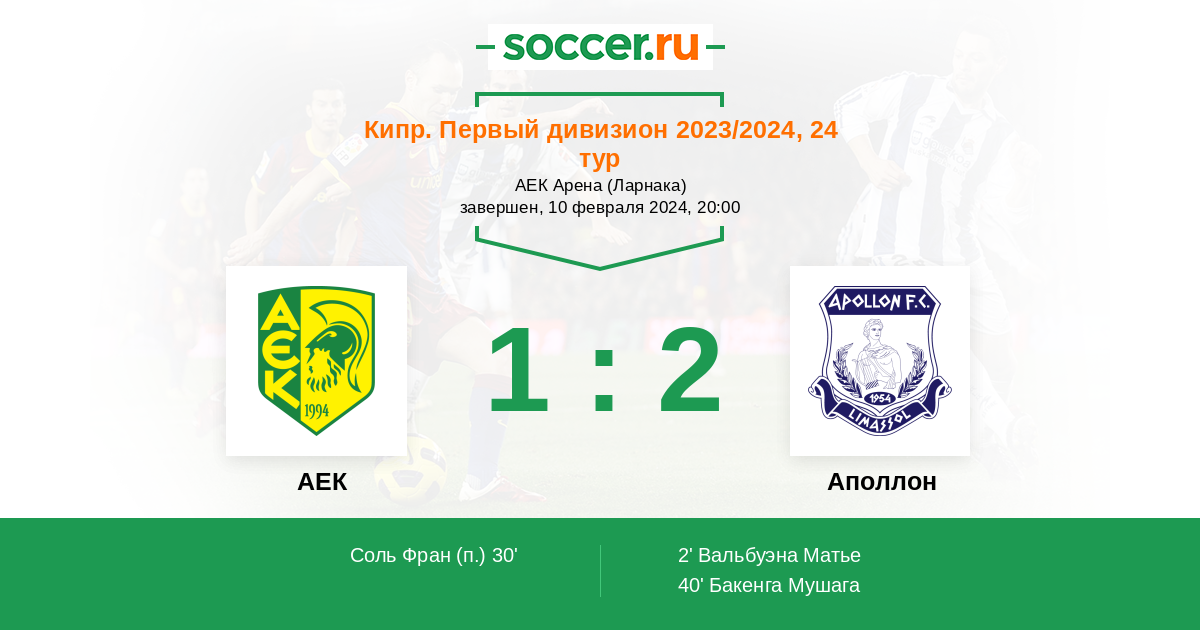 Протокол матча АЕК против Аполлон
