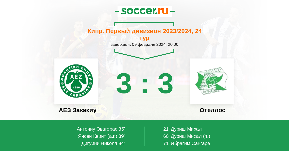 Протокол матча АЕЗ Закакиу против Отеллос