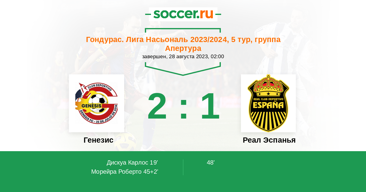 Протокол матча Генезис против Реал Эспанья