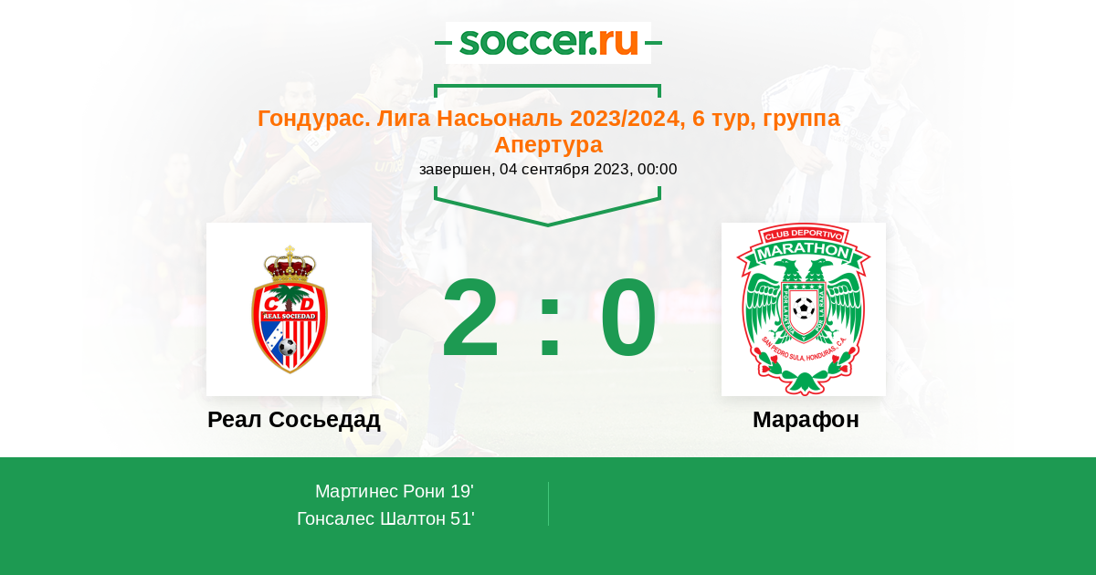 Протокол матча Реал Сосьедад против Марафон