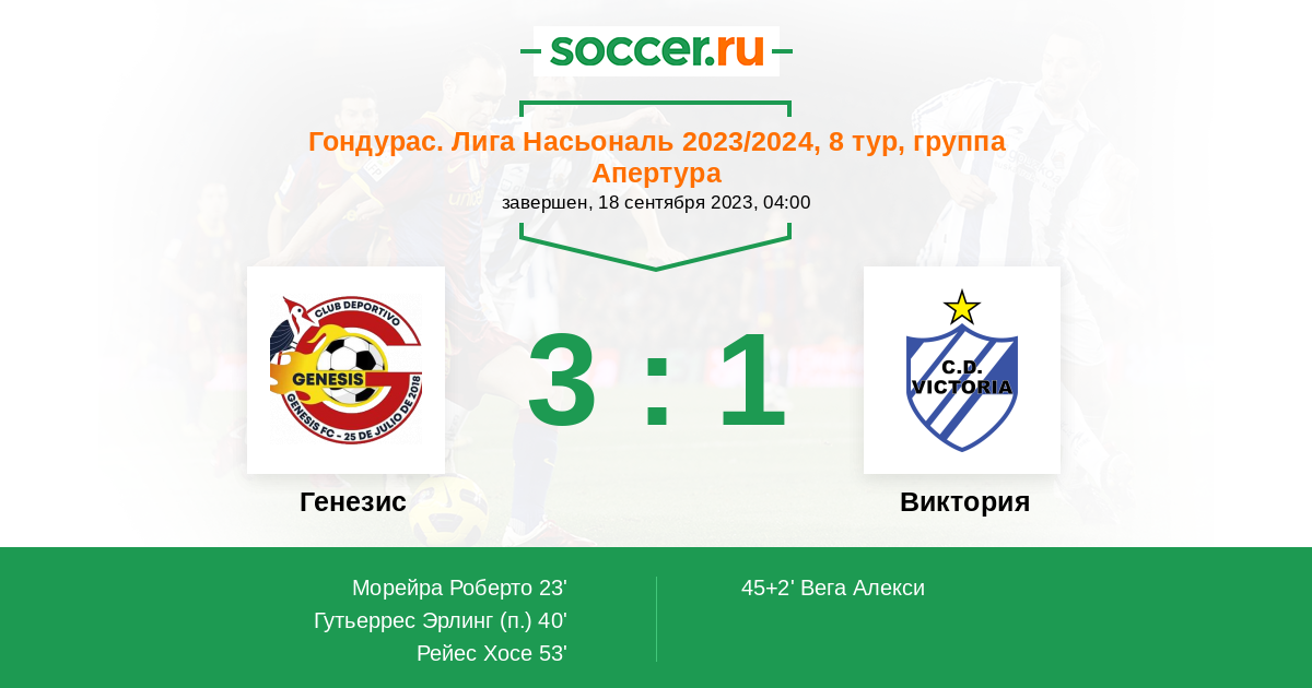 Протокол матча Генезис против Виктория