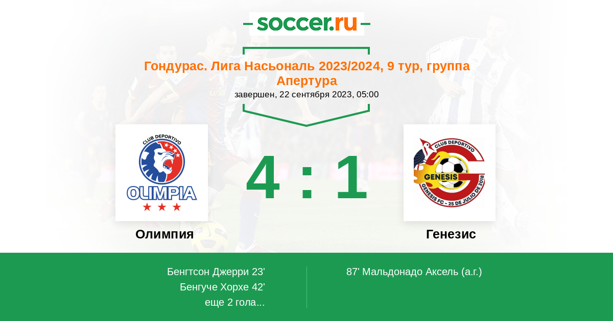 Протокол матча Олимпия против Генезис