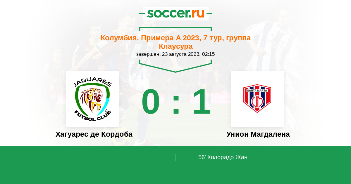 Протокол матча Хагуарес де Кордоба против Унион Магдалена