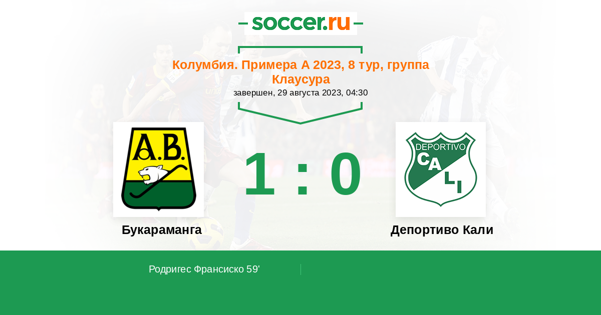 Протокол матча Букараманга против Депортиво Кали