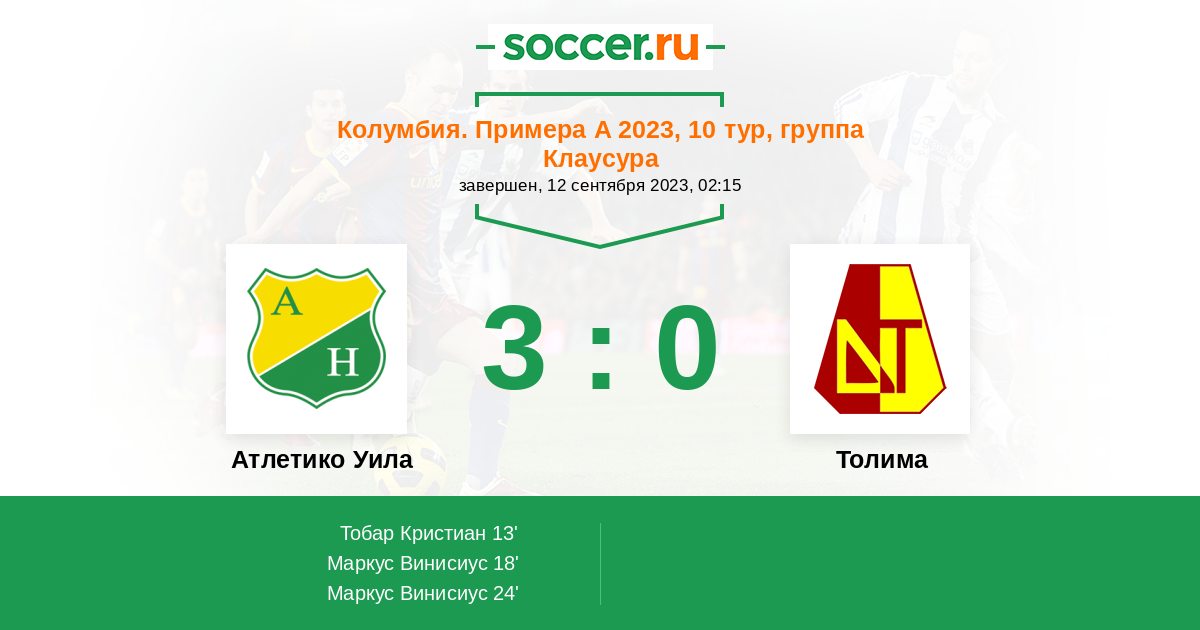 Протокол матча Атлетико Уила против Толима