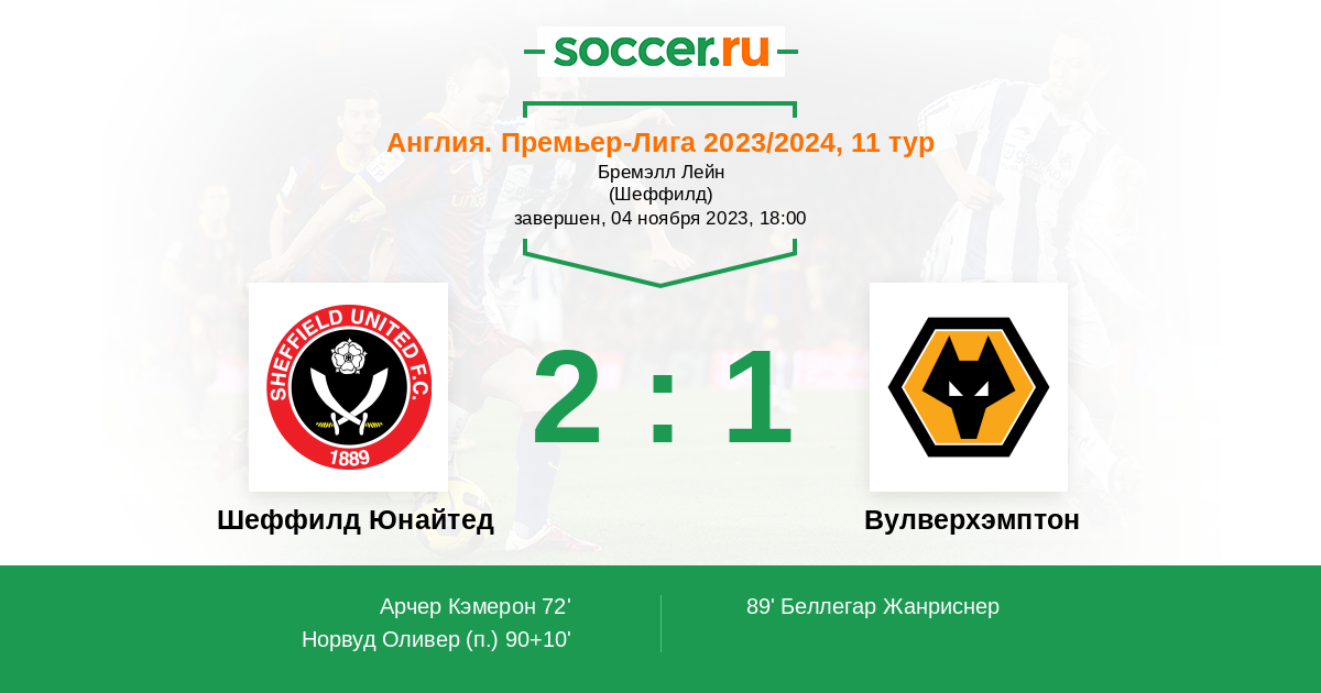 Протокол матча Шеффилд Юнайтед против Вулверхэмптон
