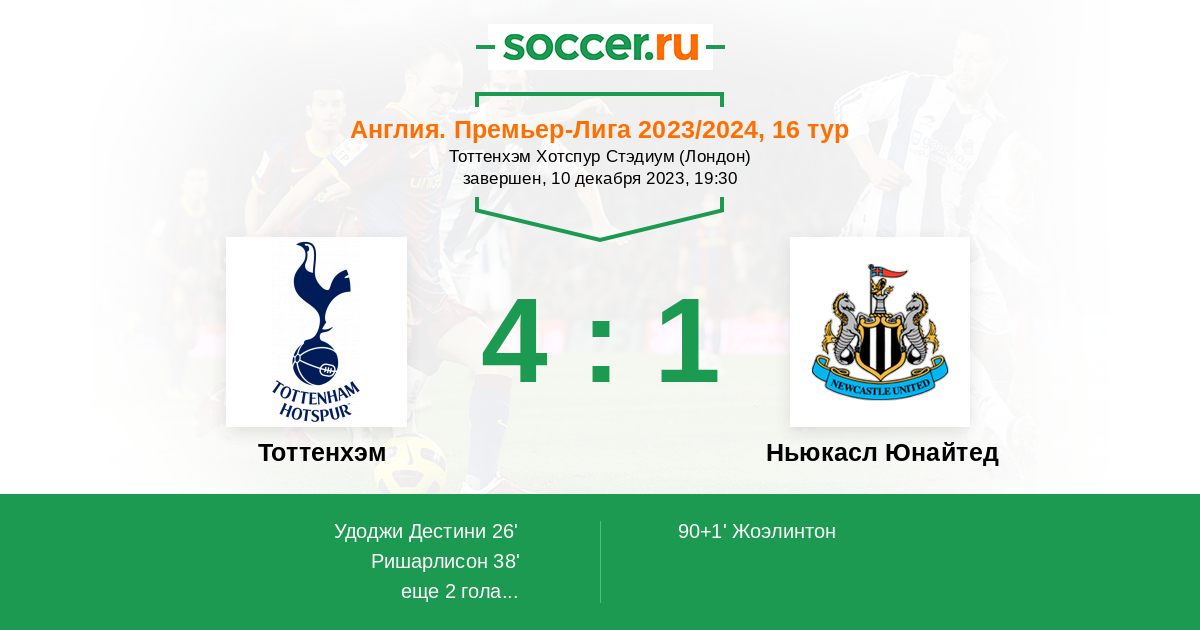 Протокол матча Тоттенхэм против Ньюкасл Юнайтед