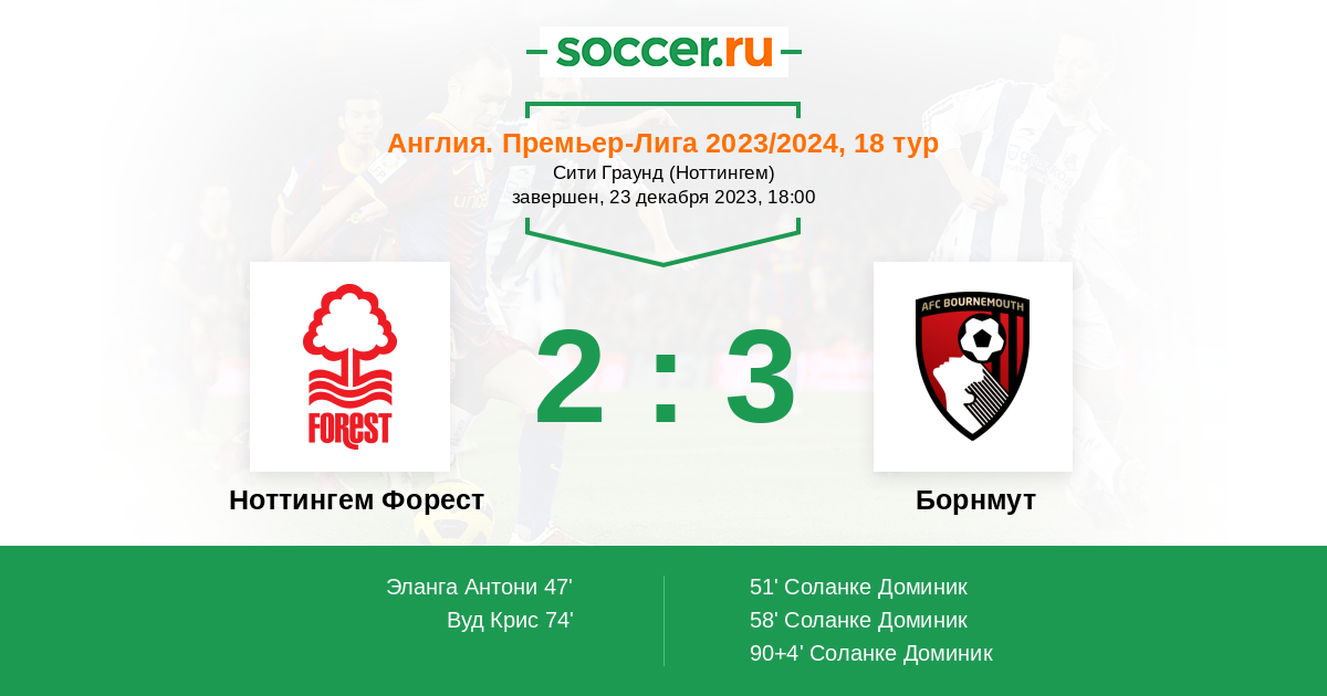 Протокол матча Ноттингем Форест против Борнмут