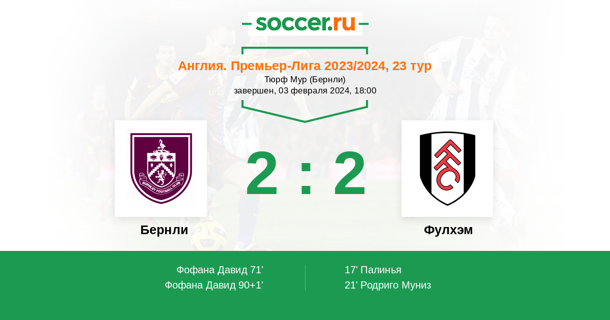 Протокол матча Бернли против Фулхэм