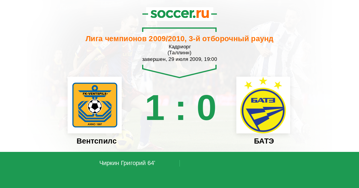 Протокол матча Вентспилс против БАТЭ