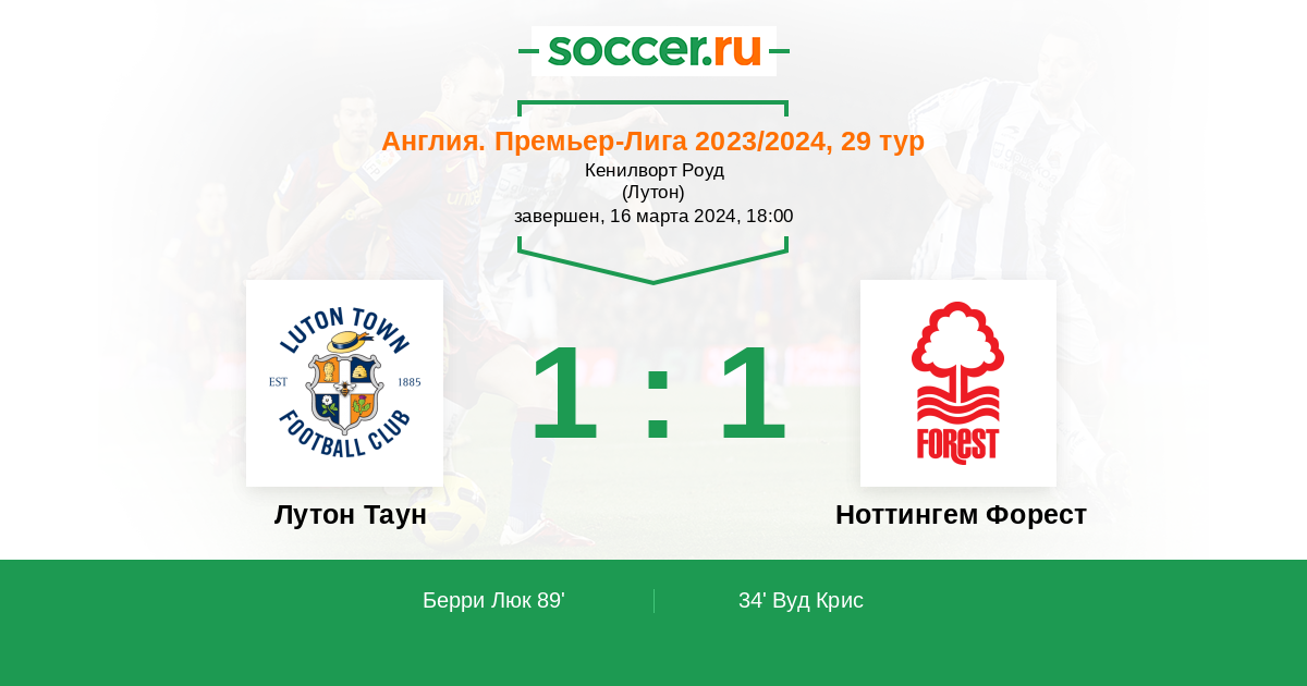 Протокол матча Лутон Таун против Ноттингем Форест