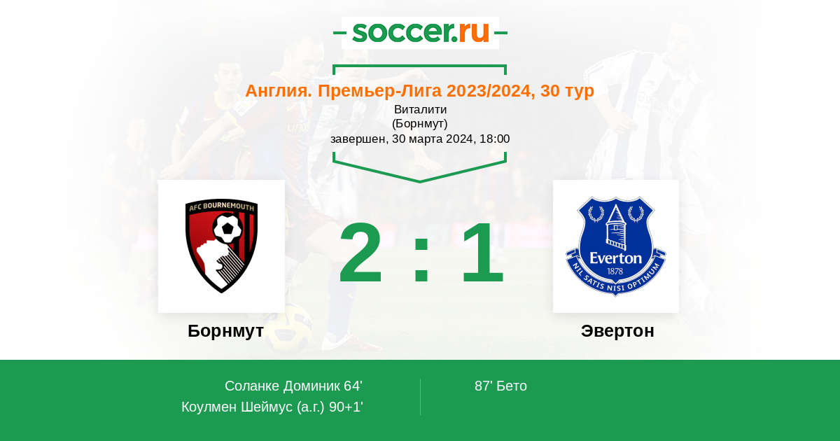 Протокол матча Борнмут против Эвертон