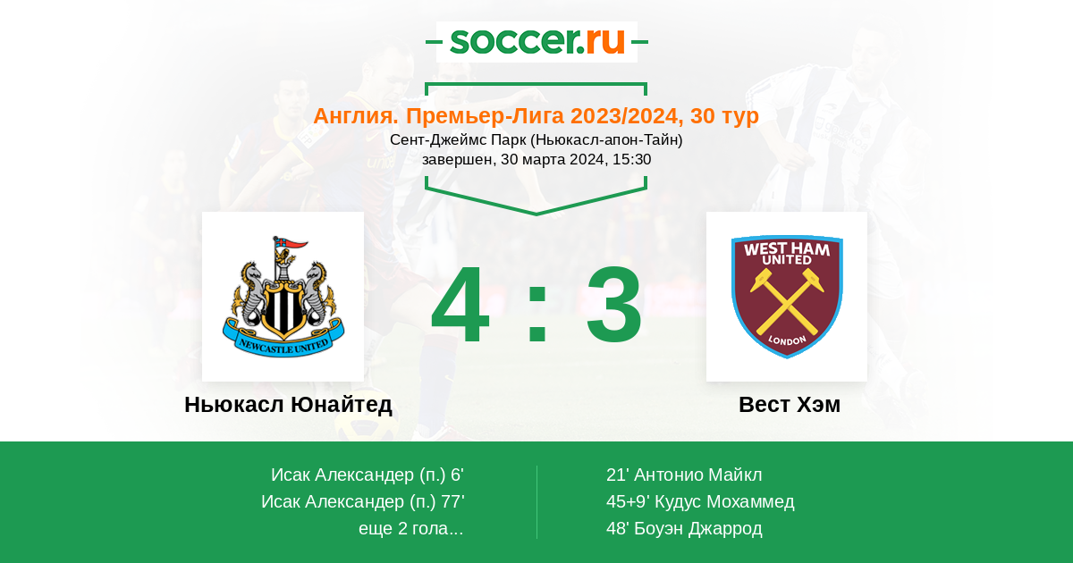 Протокол матча Ньюкасл Юнайтед против Вест Хэм
