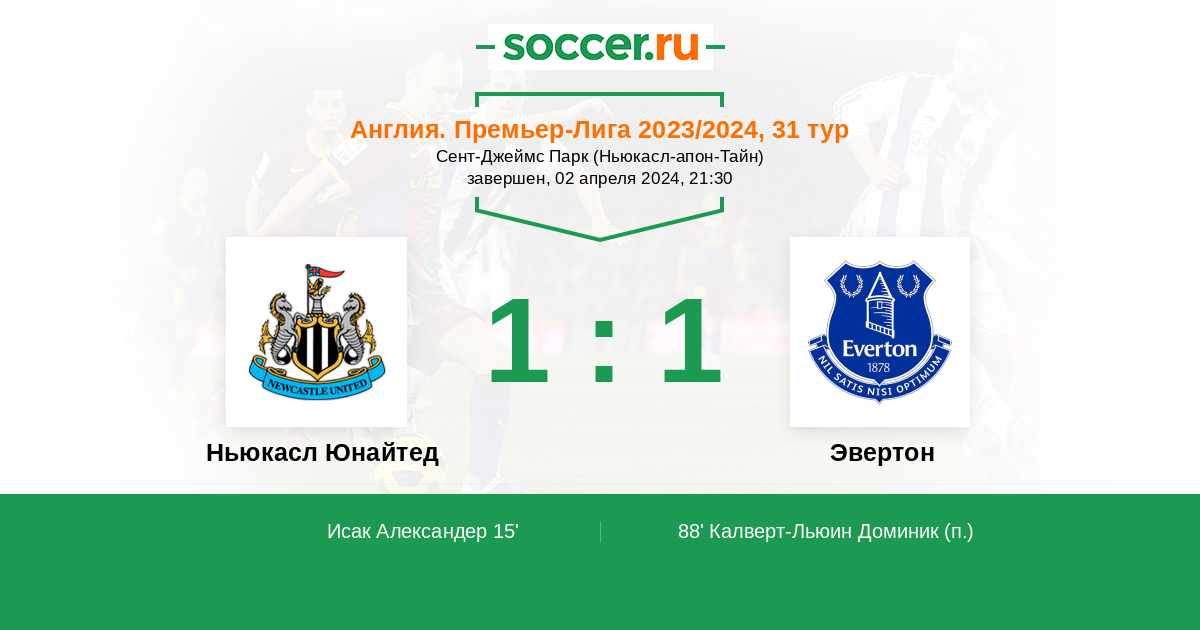 Протокол матча Ньюкасл Юнайтед против Эвертон