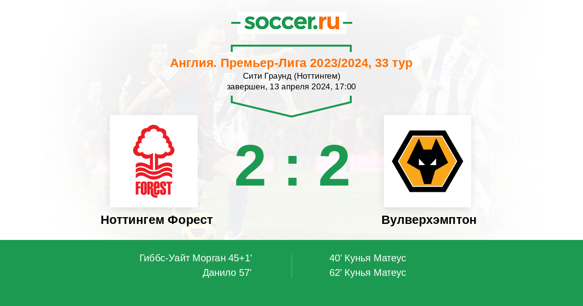 Протокол матча Ноттингем Форест против Вулверхэмптон