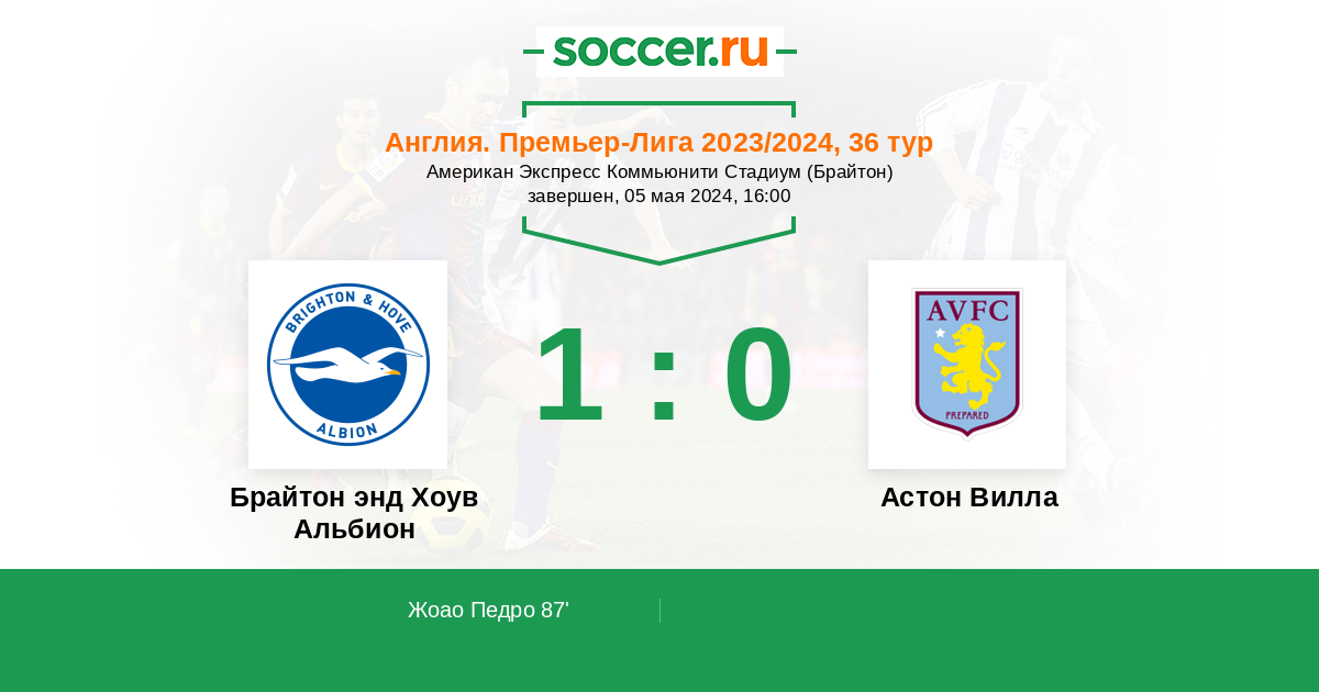 Протокол матча Брайтон энд Хоув Альбион против Астон Вилла