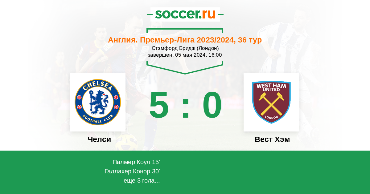 Протокол матча Челси против Вест Хэм