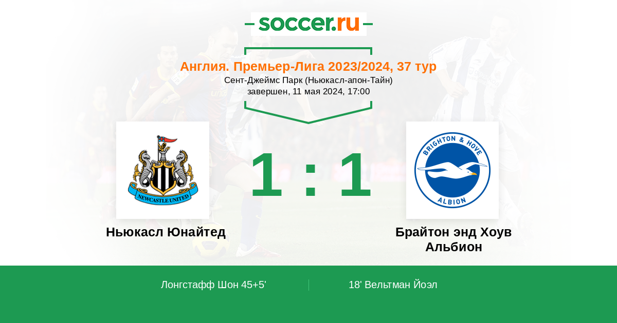 Протокол матча Ньюкасл Юнайтед против Брайтон энд Хоув Альбион