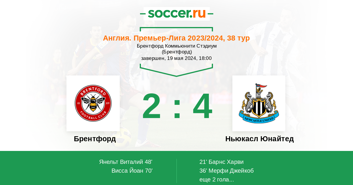 Протокол матча Брентфорд против Ньюкасл Юнайтед
