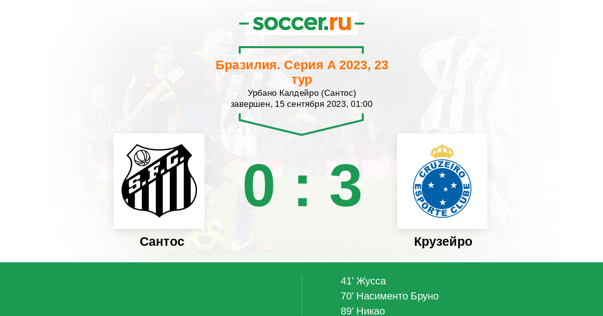 Протокол матча Сантос против Крузейро