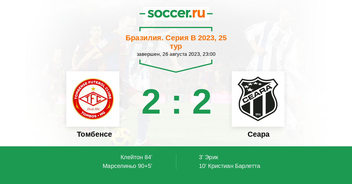 Протокол матча Томбенсе против Сеара