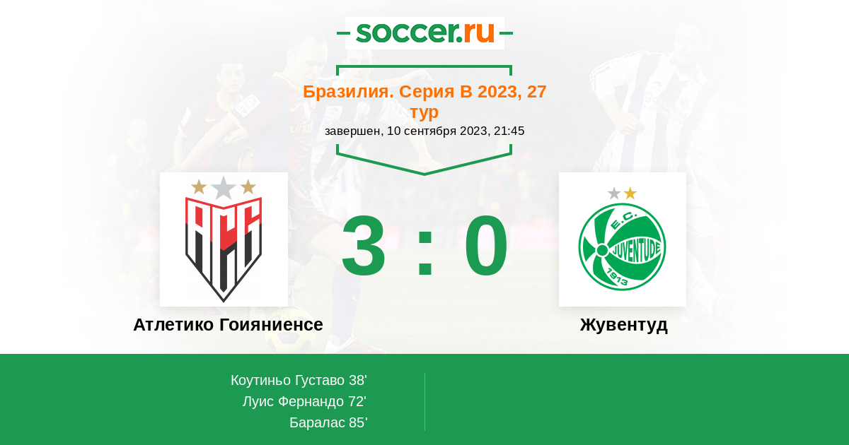Протокол матча Атлетико Гоияниенсе против Жувентуд