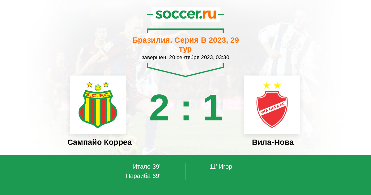 Протокол матча Сампайо Корреа против Вила-Нова
