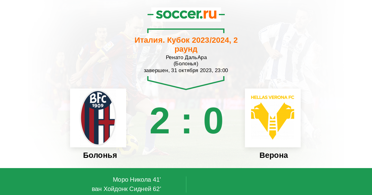 Протокол матча Болонья против Верона