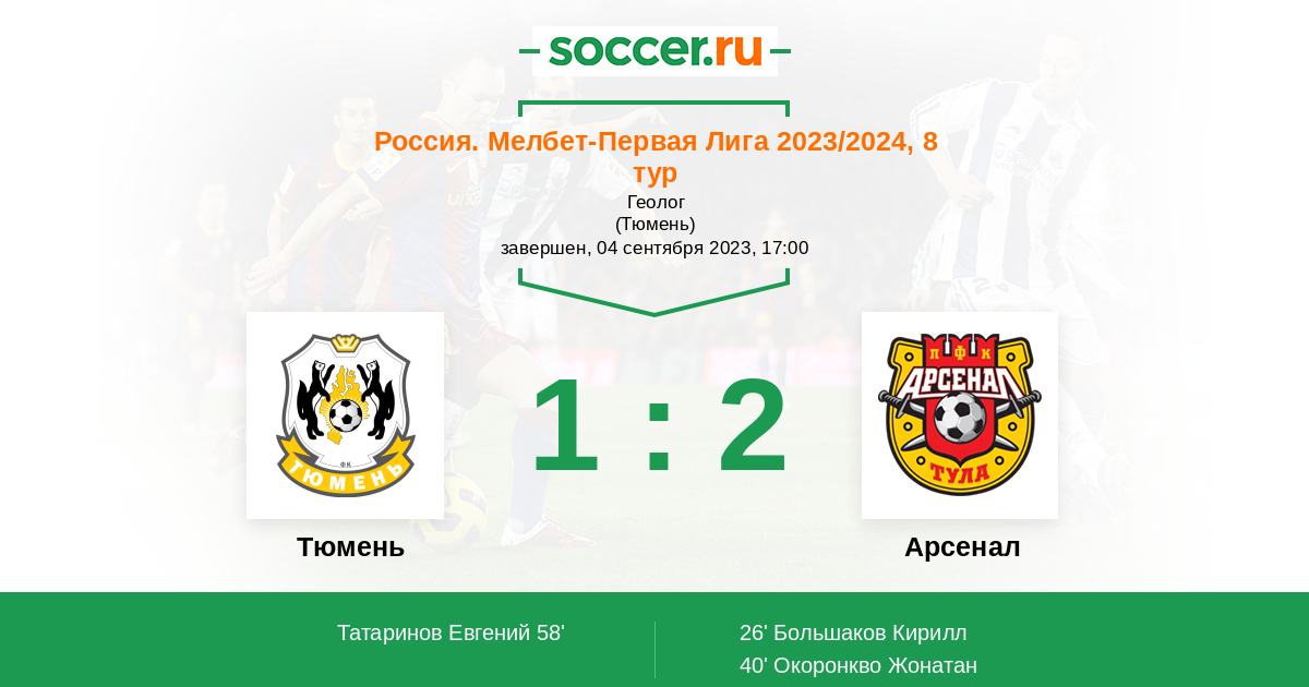 Протокол матча Тюмень против Арсенал