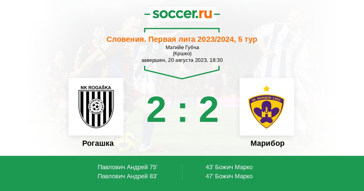 Протокол матча Рогашка против Марибор