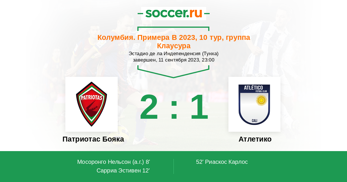 Протокол матча Патриотас Бояка против Атлетико Кали