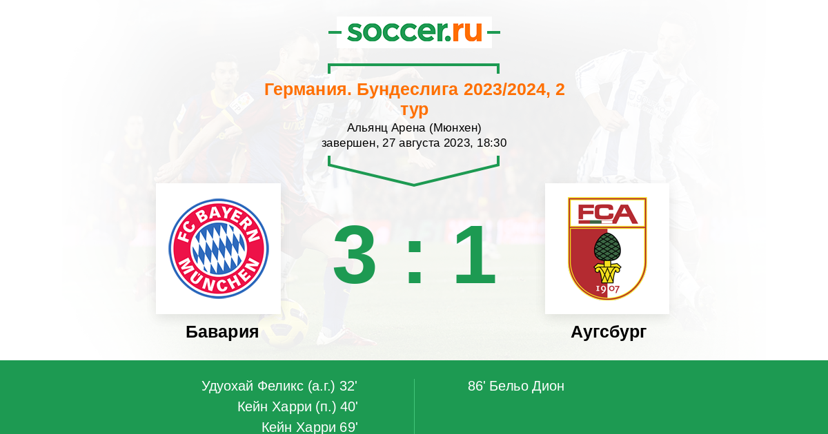 Протокол матча Бавария против Аугсбург