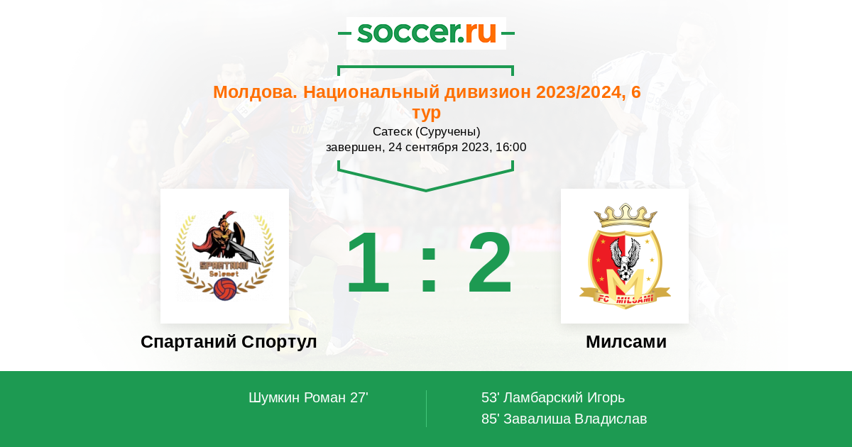 Протокол матча Спартаний Спортул против Милсами