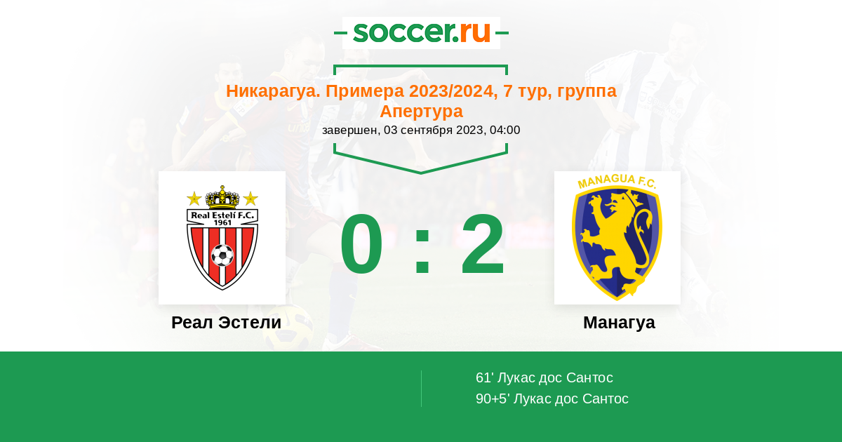 Протокол матча Реал Эстели против Манагуа