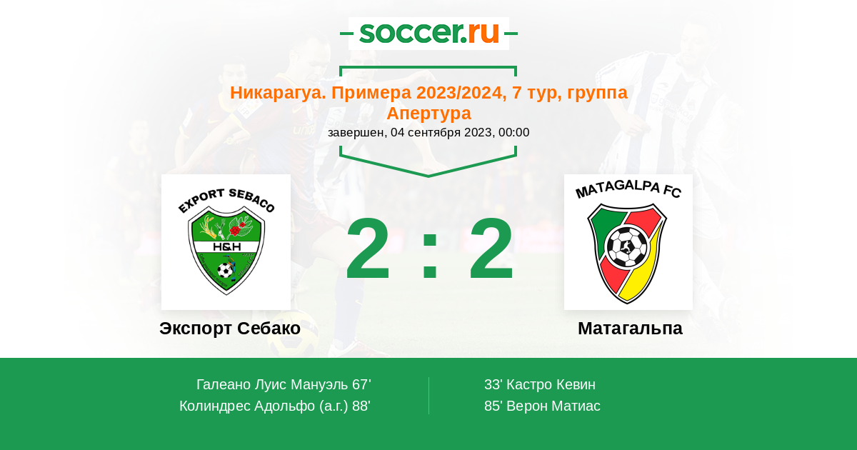 Протокол матча Экспорт Себако против Матагальпа