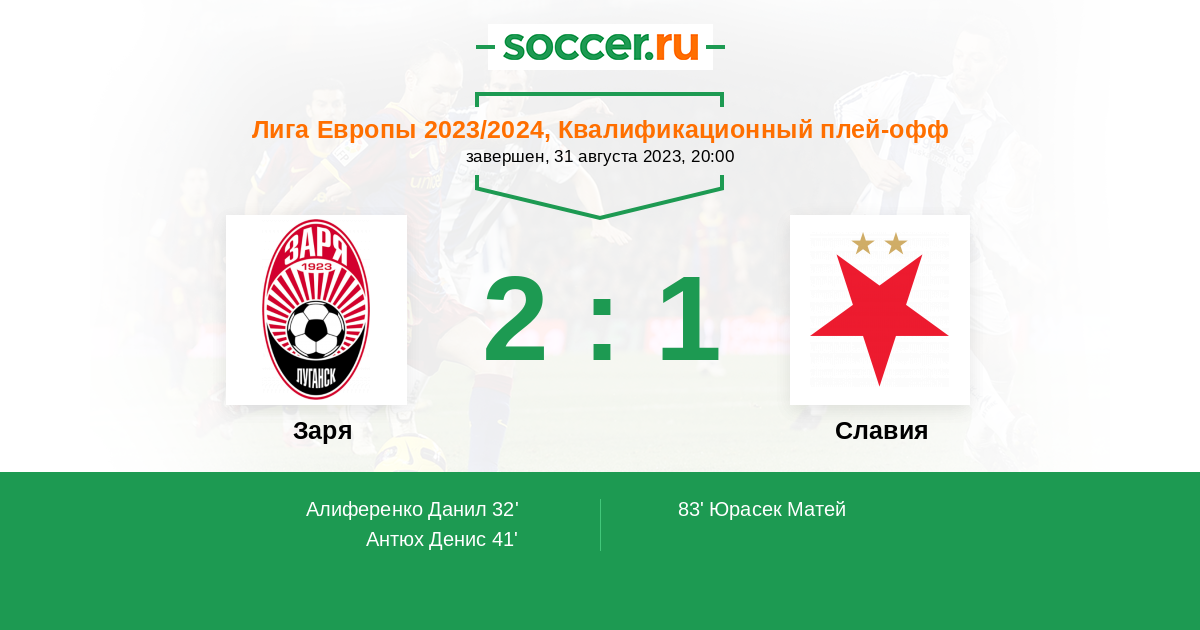 Протокол матча Заря против Славия