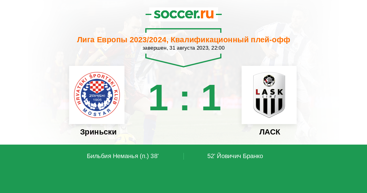 Протокол матча Зриньски против ЛАСК