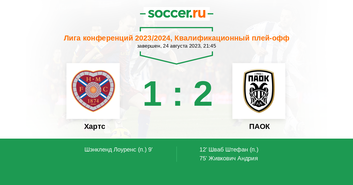 Протокол матча Хартс против ПАОК