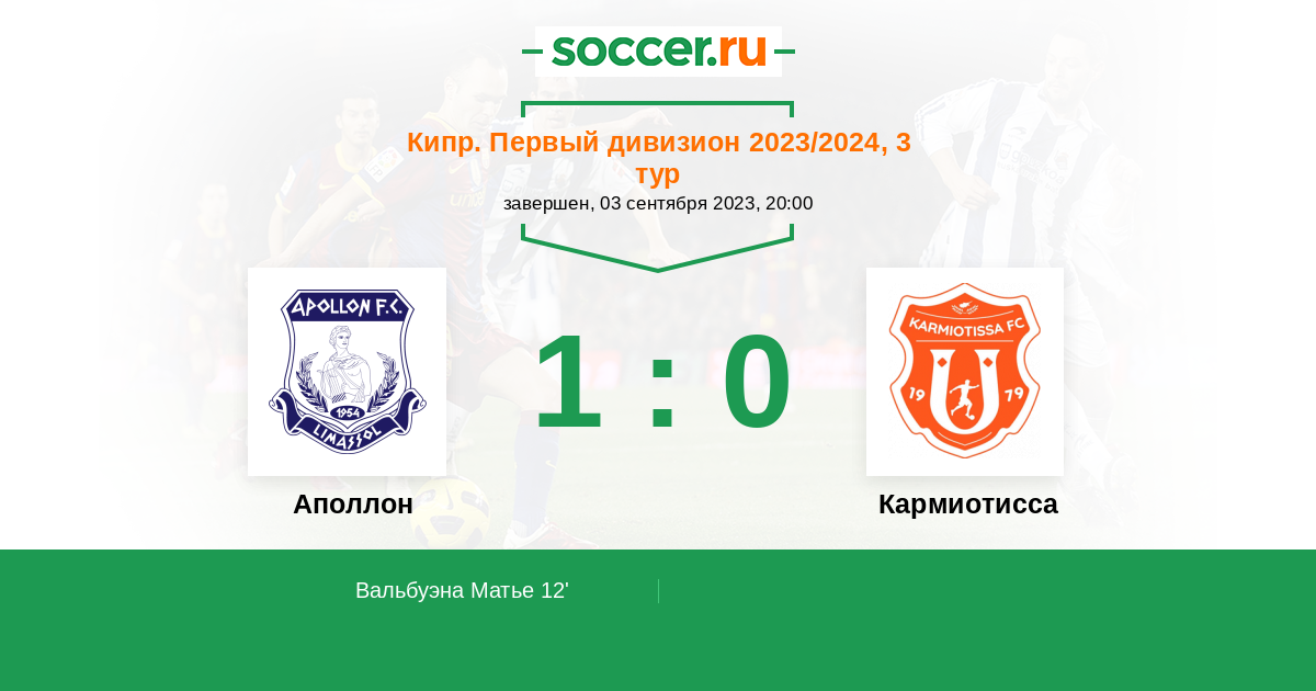 Протокол матча Аполлон против Кармиотисса