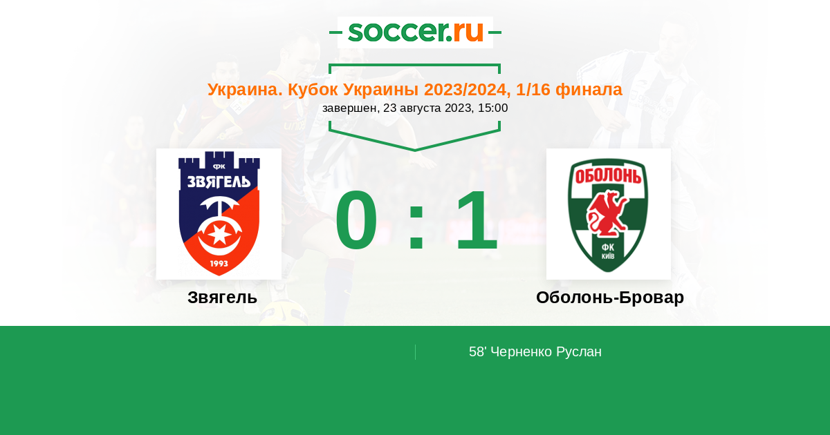 Протокол матча Звягель против Оболонь-Бровар