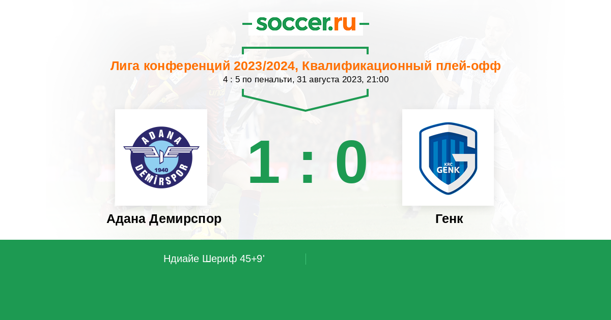 Протокол матча Адана Демирспор против Генк