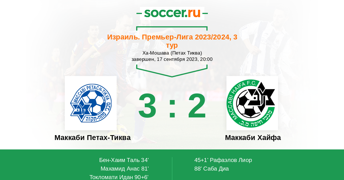 Протокол матча Маккаби Петах-Тиква против Маккаби Хайфа