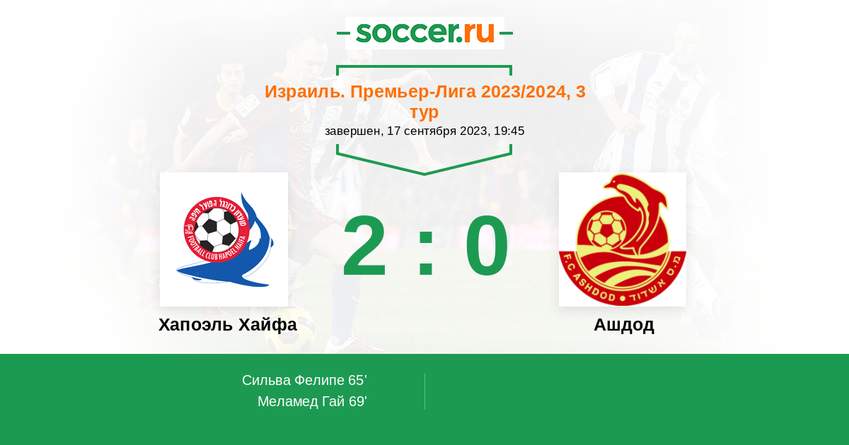 Протокол матча Хапоэль Хайфа против Ашдод