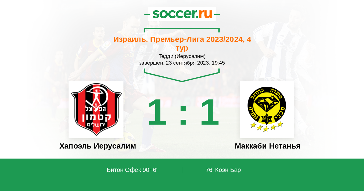 Протокол матча Хапоэль Иерусалим против Маккаби Нетанья