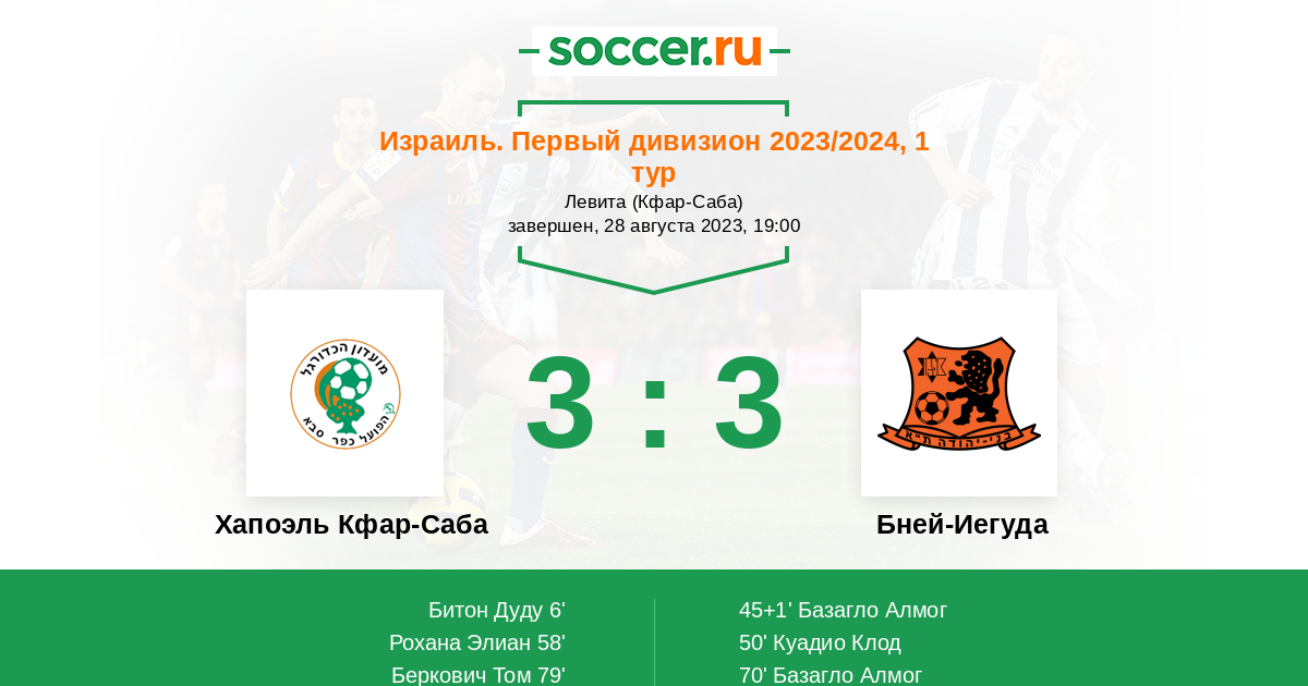 Протокол матча Хапоэль Кфар-Саба против Бней-Иегуда