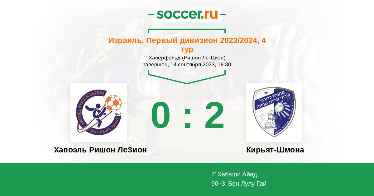 Протокол матча Хапоэль Ришон ЛеЗион против Кирьят-Шмона