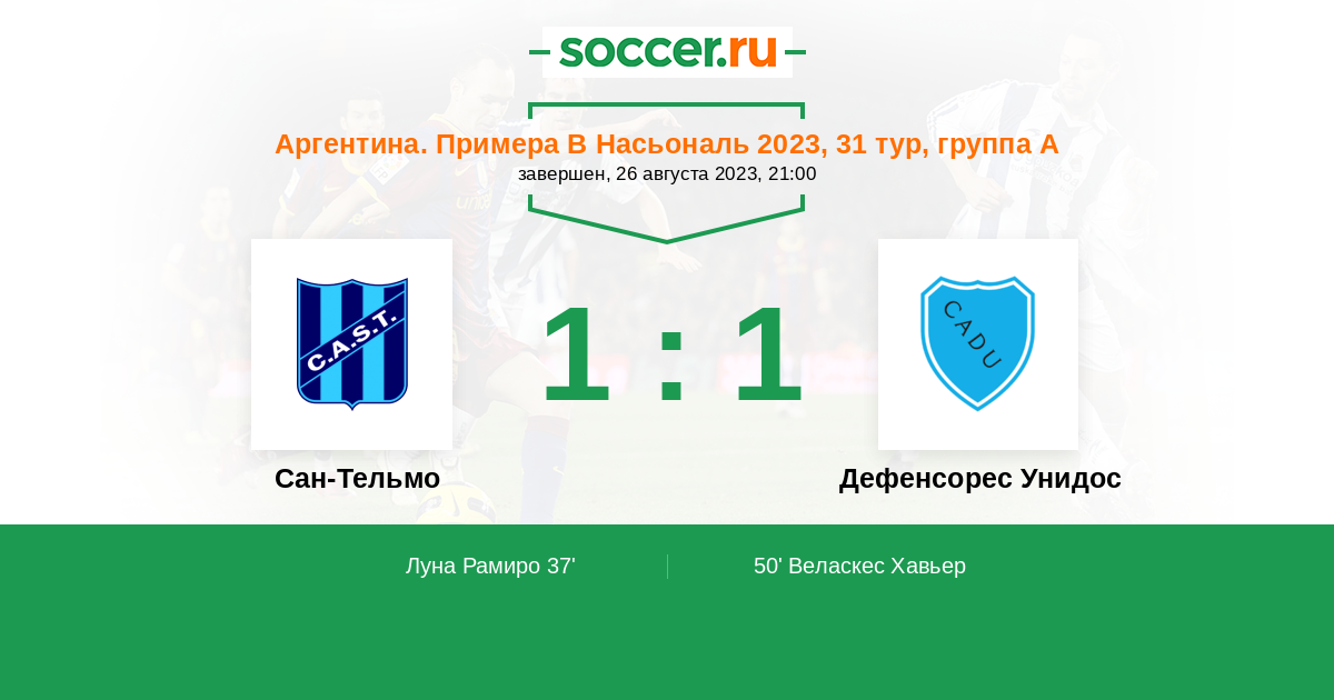 Протокол матча Сан-Тельмо против Дефенсорес Унидос